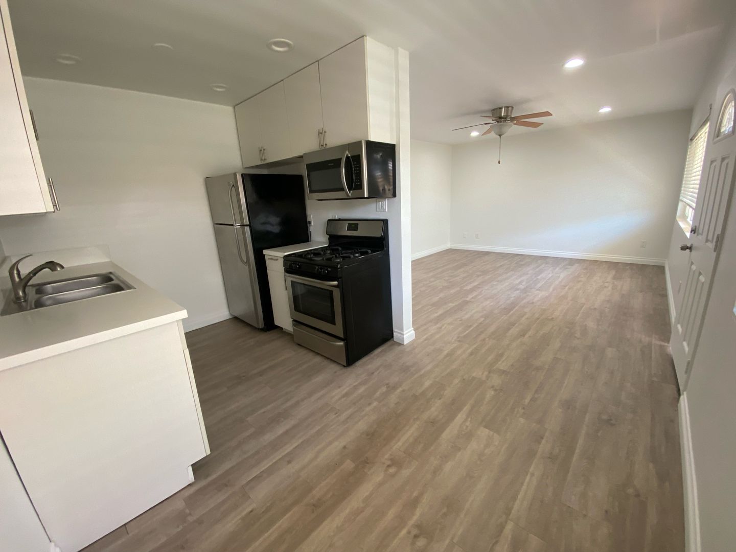 Bright and spacious 1 bedroom, 1 bath apartment. Recently renovated with stainless steel appliances, recessed lighting, ceiling fans, laminate flooring. On-site laundry. This unit comes with 1 designated parking space. Easy access to freeways, public transportation, shopping and restaurants.